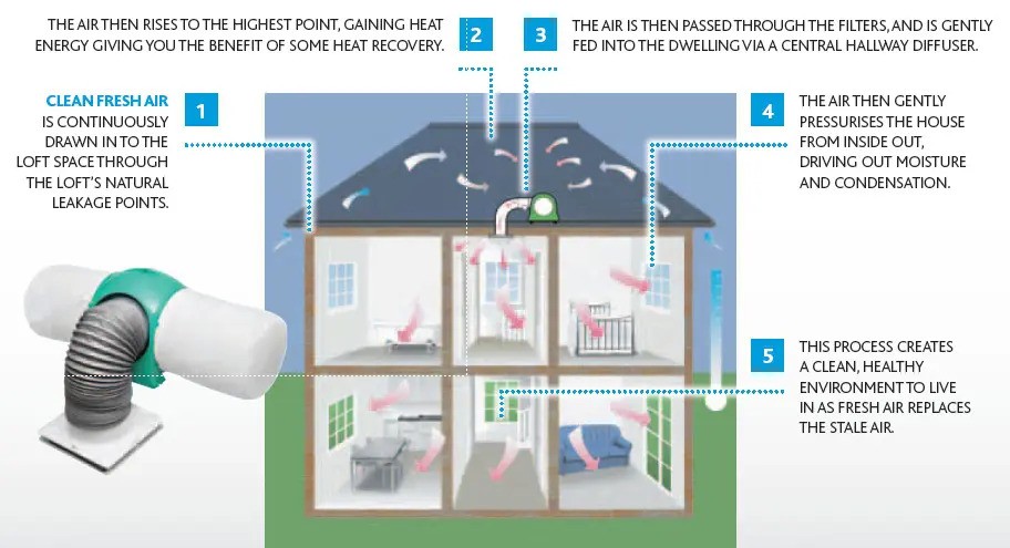 At Dampdoctor, we take an expert approach to ensuring the right ventilation solution for your home. Our Positive Input Ventilation (PIV) system, designed specifically for homes without attics, offers the same benefits as our popular attic units. This system introduces fresh air into your home at a continuous, low rate, effectively eliminating condensation and dampness. It also helps expel indoor pollutants like radon gas and carbon monoxide, improving air quality and creating a healthier living environment. This PIV system comes with an integrated heater, providing extra warmth when needed. Our team works closely with you to identify your specific needs and match the best condensation solution for your property, ensuring optimal results and long-term comfort.
